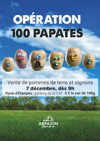 La Ville renouvelle cette année encore l’Opération 100 patates" et organise une vente de pommes de terre et d’oignons, jeudi 7 décembre, à 9h, porte d’Étampes (parking de la CAF), 5€ le sac de 10Kg. Une initiative pour valoriser le circuit court du producteur au consommateur...