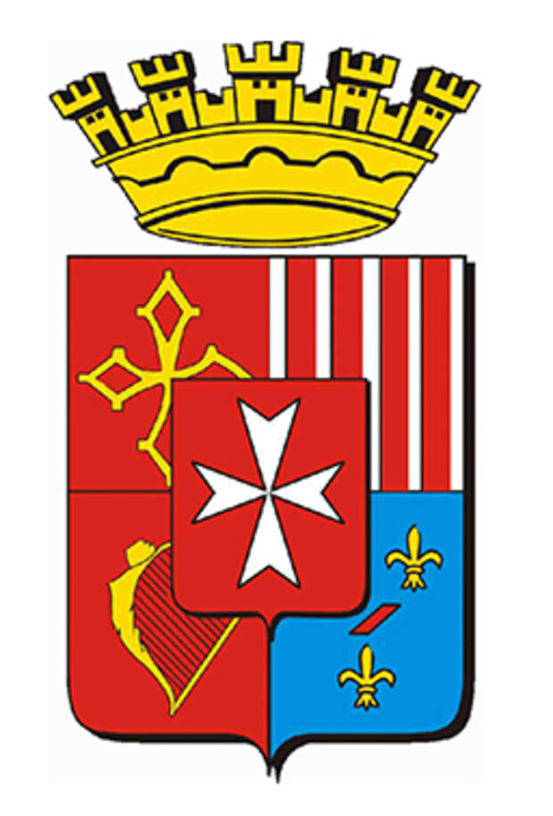 La couronne symbolise les cinq portes que comprenait l’enceinte fortifiée du bourg.